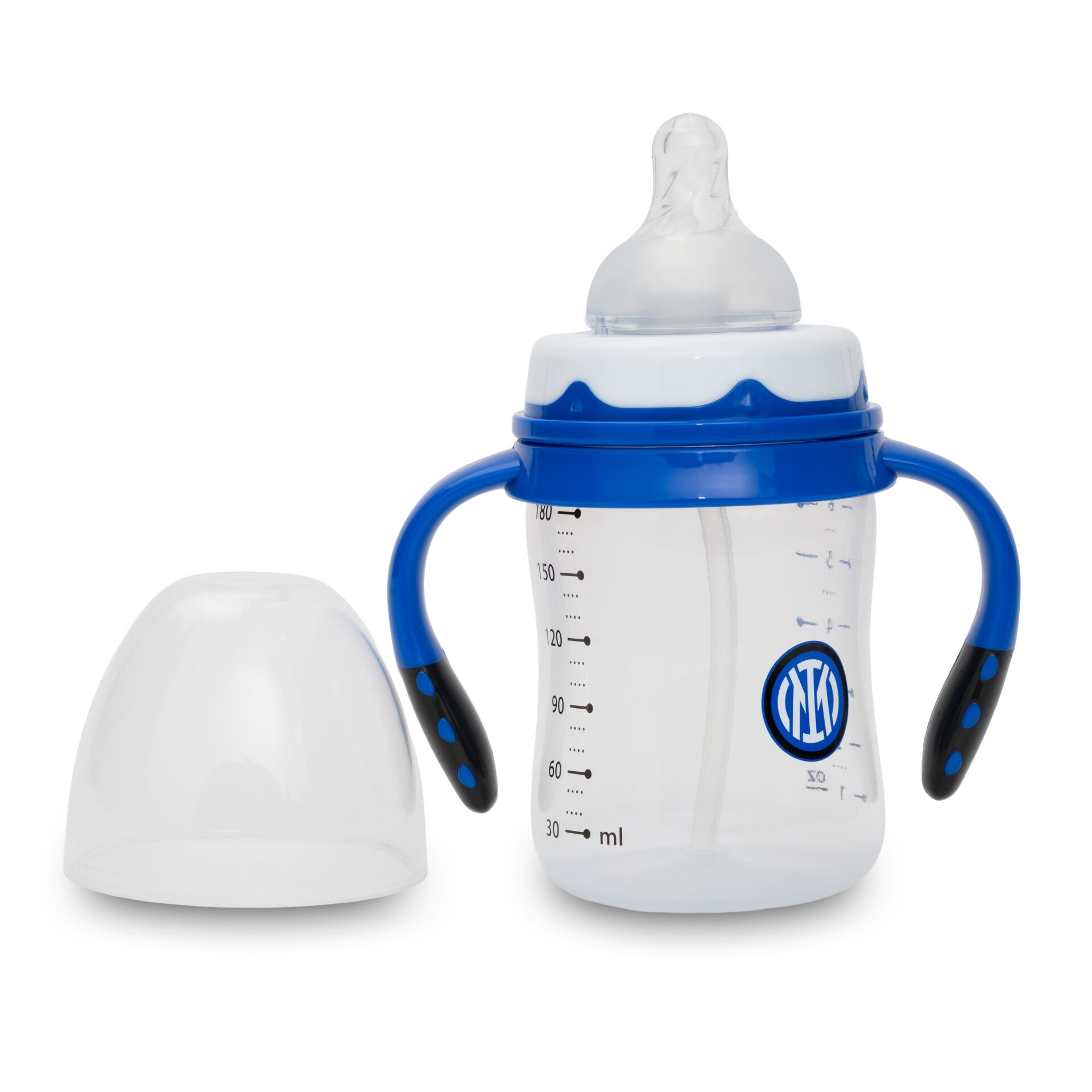 Get your little one ready to cheer on the Nerazzurri with this Inter baby bottle. Decorated with the classic blue and black stripes and the official club crest, this bottle is a perfect gift for baby showers or new arrivals. It's the ideal way for the youngest fans to show their Inter pride from their very first sip.